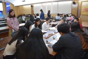 群面环节以无领导小组的形式展开。同学们分为三组,首先由每位同学轮流对面试问题进行一分钟的观点阐述,接着每组同学对这个问题展开了激烈的讨论。在短短45分钟的讨论中,大家各抒己见,比赛气氛十分热烈。